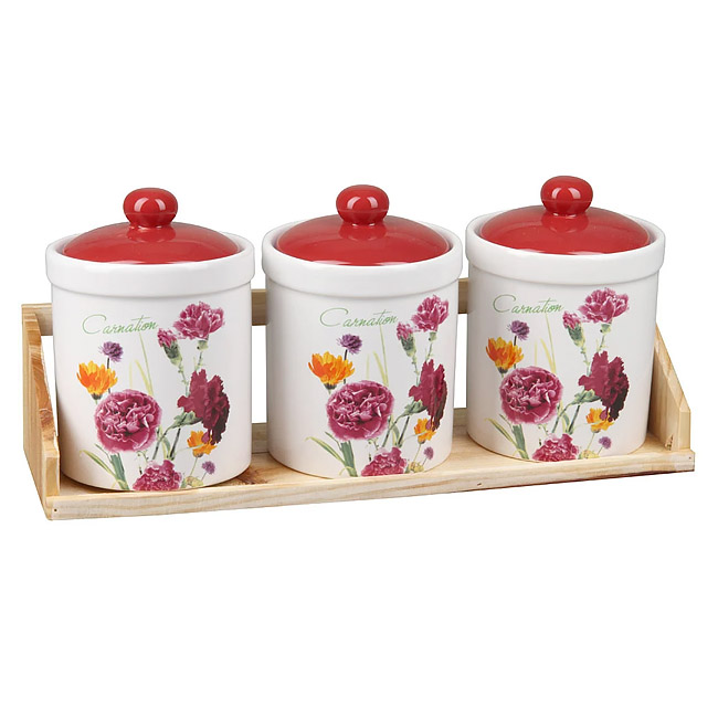 Набор банок с крышками Rosenberg 8099-5 - красивое и элегантное дополнение вашего кухонного интерьера, с которым хранить продукты станет ещё проще и удобней. Оригинальные керамические банки с крышками идеально подходят для хранения различных сыпучих продуктов, например, круп, каш, специй, соли или сахара. Различный объем банок делает набор ещё более практичным и функциональным. Изделия выполнены из высококачественных материалов, которые не влияют на вкусовые и ароматические свойства хранящихся в них продуктов. В набор входят три большие банки по 600 гр, а также оригинальная подставка для хранения. Яркий и красочный дизайн изделий отлично впишется в любую кухню и станет её настоящим украшением.