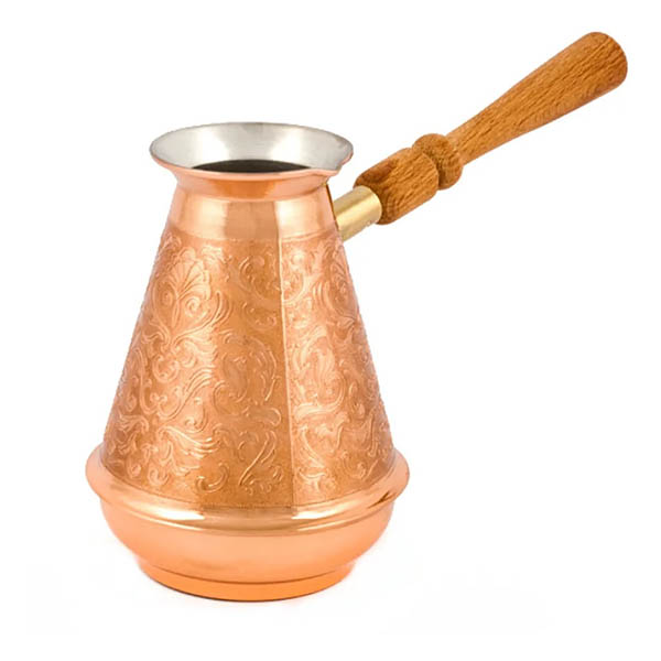 Тип - туркаМатериал корпуса - медьВысота - 14 смВес - 0.294 кгОсобенности - съемная ручка, теплоизоляционная ручкаДополнительная информация - внутренняя поверхность кофеварки покрыта пищевым оловом толщиной 9-12 мкм