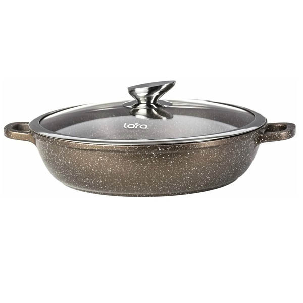 Тип - Сотейник Форма - КругОбъем - 3.4 л Диаметр - 28 см Высота - 7 смМатериал корпуса - Алюминий Материал покрытия - Гранит Материал ручки - БакелитКрышка Материал крышки - Стекло Подходит для всех источников нагрева, включая индукционные