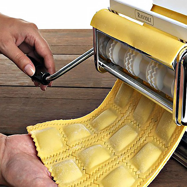 С этим прибором вы легко приготовите пельмени, вареники, равиоли и прочие изделия из теста с начинкой для большой семьи или компании, не прилагая особых усилий! Машинка все сделает за вас сама! Раскатайте тесто с помощью специальных валиков, распределите начинку, прокрутите ручку и пельмени идеальной формы с волнистыми краями готовы! Осталось их только отварить и красиво выложить на блюдо! И конечно же выслушать комплименты в свой адрес!