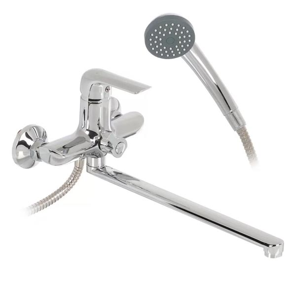 Тип смесителя: однорычажныйСпособ монтажа: вертикальныйНазначение: для ванныМатериал: цинковый сплавЗапорный клапан: керамический картриджЦвет: хром.Количество отверстий для монтажа: 2Стандарт подводки: 1/2"Диаметр картриджа: 35 ммИзлив: поворотныйДлина излива: 350 ммЛейкаАэратор
