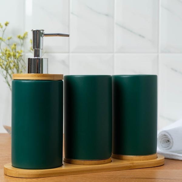 Дозатор 400 мл, 2 стакана, на подставкеСостав Дерево, керамика, пластик