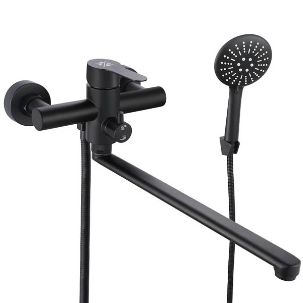 Цвет товара - черныйУправление - рычажноеКомплектация - Смеситель, лейка для душа, шланг для душа 1,5м, держатель лейки, эксцентрики и отражатели, паспорт.Монтаж - вертикальныйНазначение - для ванны с душемМатериал корпуса - нержавеющая стальТип излива - поворотныйВид излива - традиционныйТип подводки - гибкаяЗапорный клапан - керамический картриджДлина излива - 350 мм.Функции - переключатель на излив/душОсобенности - аэратор, держатель душевой лейки, поворотный излив