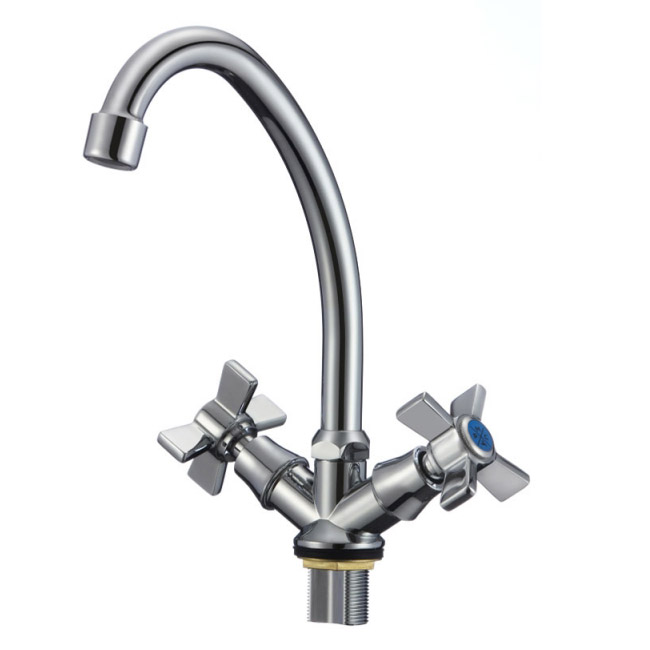 Смеситель для кухни с высоким изливом. Кран-букса латунная с керамическими пластинами угол поворота 90 градусов.
