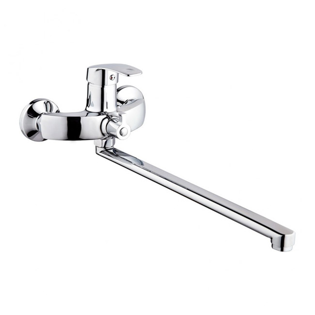 Смеситель для ванны с длинным изливомКартридж: керамический 35ммЕвро-переключение на душПоворотный прямой изливАэратор: пластиковыйПокрытие: хромВ комплекте: эксцентрики, отражатели, металлический шланг для душа 1,5 м, лейка для душа Гарантия 5 летМатериал латуньДлина шланга, м: 1,5
