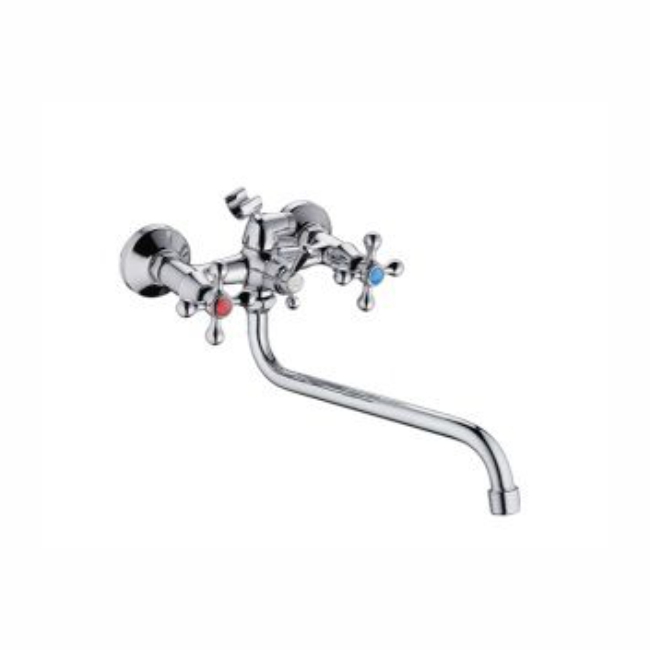 Общие характеристики:Крепление - От стеныМеханизм - 360гр. шаровый переключатель, латуньМатериал - ЛатуньУправление - ДвухвентильноеИзлив - Поворотный