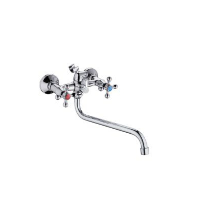 Общие характеристики:Крепление - От стеныМеханизм - Кран-букса латунная 90гр.Материал - ЛатуньУправление - ДвухвентильноеИзлив - Поворотный