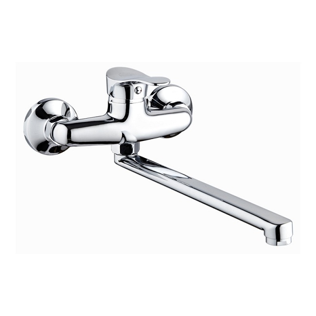 Смеситель для кухни с длинным поворотным изливомКартридж: керамический 35ммКрепление: настенноеАэратор: пластиковыйПокрытие: хром Характеристики:Материал:Металл Цвет:Хром Управление:Рычажное Высота (мм):155 Длина излива (мм):220 Вращение излива:Поворотный Стандарт подводки:1/2"