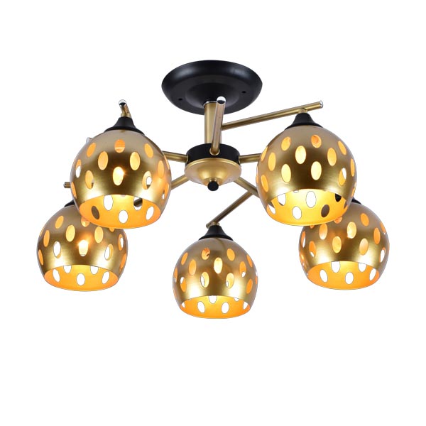 Количество ламп: 5 шт.Мощность: 40 ВтТип цоколя: E27Цвет арматуры: ЧерныйМатериал арматуры: МеталлЦвет плафонов/подвесок: ЗолотоМатериал плафона/абажура: Металл