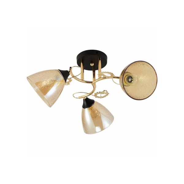 Высота: 250 ммДлина / Ширина: 520×520 ммКоличество ламп: 3Мощность лампы: 60 ВтОбщая мощность: 180 ВтТип ламп: накаливанияЦоколь: E27Напряжение: 220 ВМатериал арматуры: металл, золотой цветМатериал плафонов: стеклоОсвещаемая площадь: до 180 м²