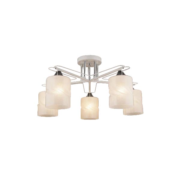 Ламп: 5Мощность: 5 × 60 ВтНапряжение: 220 ВПлафон: стеклоРазмер: D540 × H280 ммУпаковка: 4 шт.Цвет: белый + хромЦоколь: E27