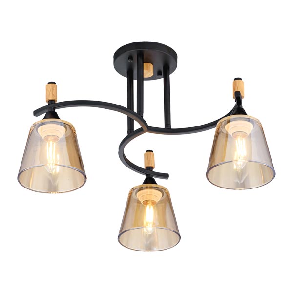 Размеры: Ø500 × H290 ммЛампы:Тип лампы: светодиодная, энергосберегающая, лампа накаливанияТип цоколя: E27Количество ламп: 3Максимальная мощность лампы: 3 × 40 Вт (120 Вт)Цвет и материал:Материал арматуры: металлЦвет: черный (BK)