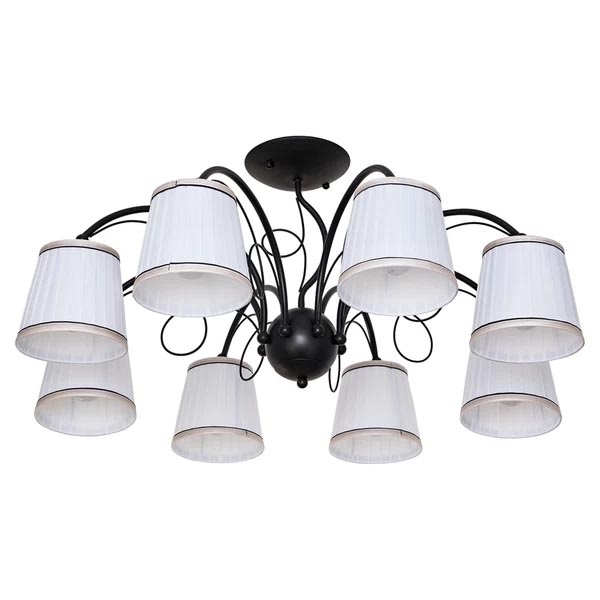 Площадь освещения: 18 м²Длина светильника: 780 ммШирина светильника: 780 ммВысота светильника: 350 ммЦвет арматуры: черныйЦвет плафона/декора: белыйКоличество ламп: 8 шт.Материал плафона/декора: текстильМатериал арматуры: металлРазмещение: потолочноеСпособ монтажа: на крюкМощность светильника: 480 ВтМаксимальная мощность лампы: 60 ВтСтепень защиты: IP20