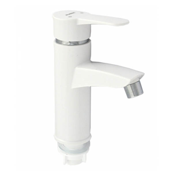 Пластиковый смеситель для умывальникаФиксированный изливКерамический картриджМонтаж при помощи гайкиВысота 173ммГлубина 146ммШирина 75мм