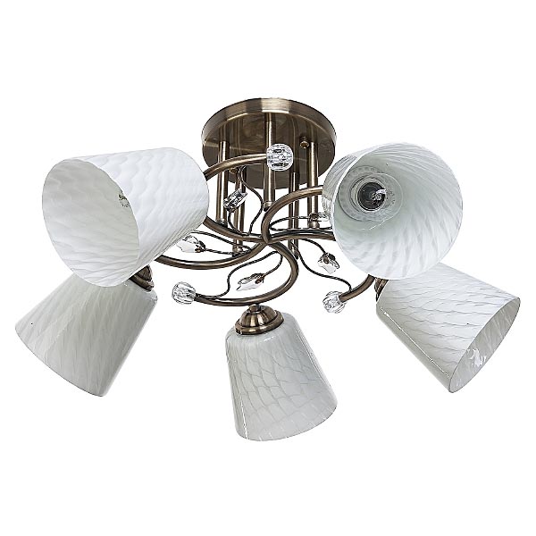 ысота (мм) 280Высота мин. (мм) 280Ширина (мм) 510Длина (мм) 510Внешний видПреобладающий цвет БронзаЦвет основания Античная бронзаЦвет плафона БелыйМатериал основания МеталлМатериал плафона СтеклоВид плафона ПлафоныНаправление свечения ВнизФорма плафона Круглый плафонЭлектрикаКоличество ламп (шт) 5Цоколь E27Мощность лампы (Вт) 40Площадь освещения (кв.м) 11