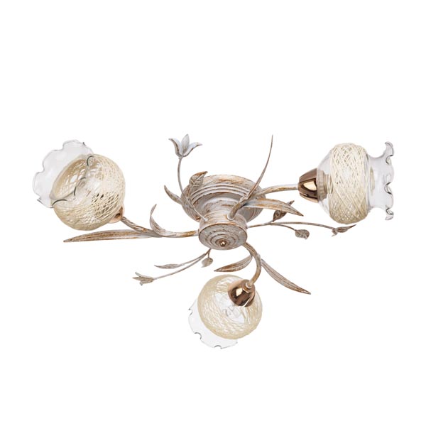 Основание: металлЦвет основания: белый, золотоПлафон: стекло, ротангЦвет плафона: прозрачный, белыйТип лампы: НакаливанияКоличество ламп: 3Мощность: 60WЦоколь: E27Размер товара: 500*500*150мм