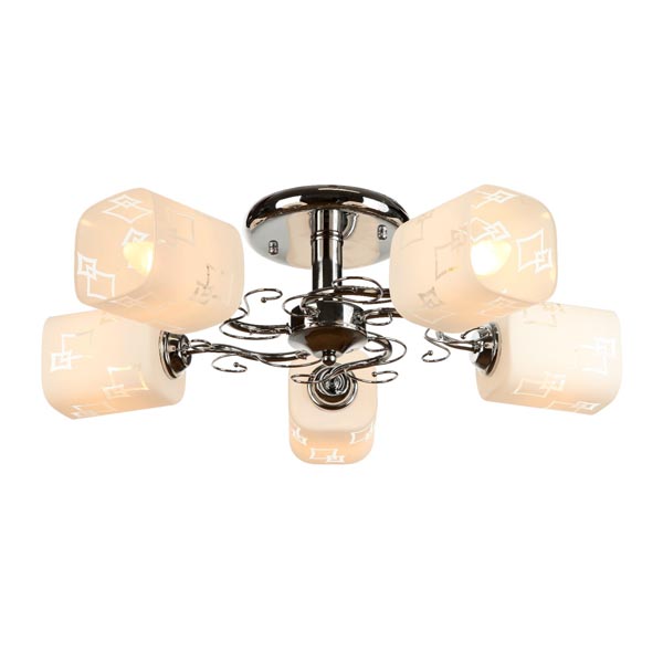 Количество ламп: 5 шт.Цоколь: E14Максимальная мощность одной лампы: 60 ВтПлощадь освещения: 5 м²Материал основания: МеталлЦвет основания: ХромТип подвеса: ШтангаТип рассеивателя: ПлафонОттенок рассеивателя: Светлые тонаМатериал рассеивателя: Стекло