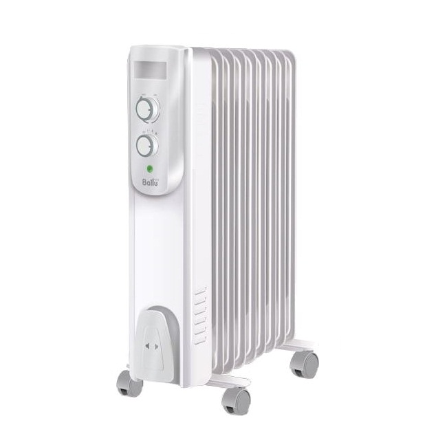 Тип: масляный радиаторНагревательный элемент: спиральУправление: поворотный переключательИсточник питания: электросетьМаксимальная мощность 2000 Вт / 1200/800 Вт /Площадь обогрева 20 м²Количество секций: 9Функции: термостатзащита от перегреваУстановка (монтаж): напольныйКолеса для перемещенияГабариты (ВхШхГ): 60x40.5x25 смВес 6.5 кг