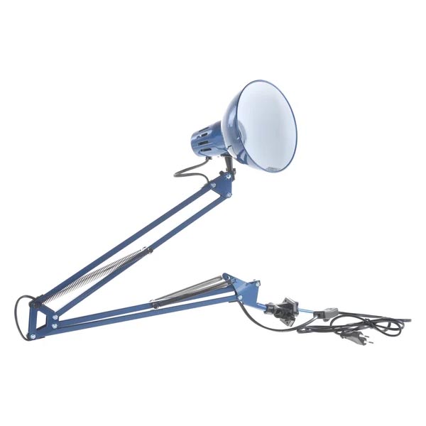 Вид крепления: на струбцинеМощность светильника: 40 ВтМощность лампы: 40 ВтТип лампы: накаливанияТип подключения: шнур с вилкойНапряжение питания: 220 ВЦоколь: E27Степень защиты: IP20Материал корпуса: металлМатериал плафона: металлПоверхность плафона / арматуры: глянцевая / глянцеваяЦвет корпуса: синийЦвет плафона: синийМаксимальная высота: 800 мм