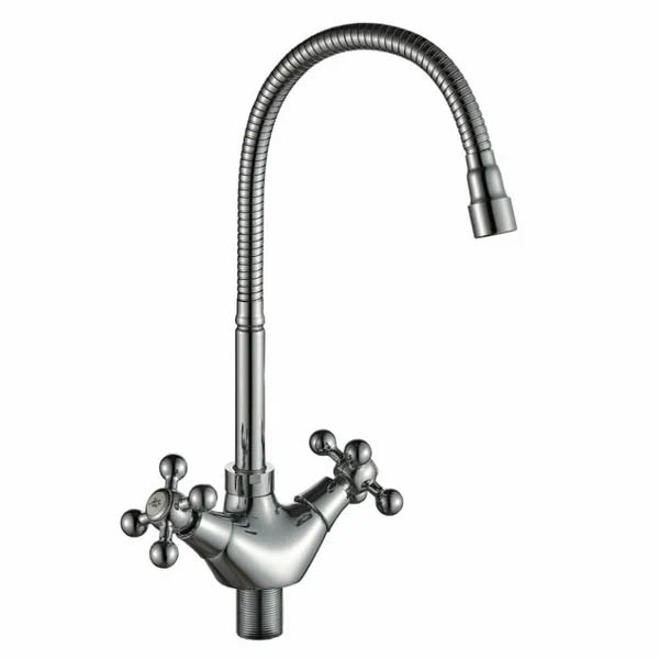 Материал корпуса - латунь.Высокий поворотный излив на 360 градусов.Кран-букса латунная с керамическими пластинами 1/2" дюйма 20 шлицов (угол поворота 180 градусов).Аэратор - наружняя резьба d24 мм.Присоединительный размер подводки - 1/2".Цвет - хром.