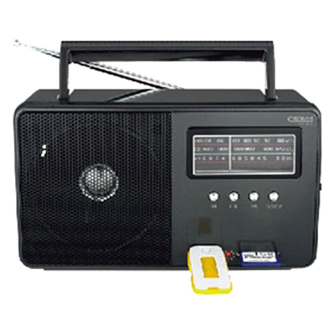 Технические характеристики:Тип - переносной Настройка частоты - аналоговая Прием - FM, СВ, КВ Количество динамиков - 1 Разъем для наушниковВоспроизведение MP3Поддержка носителей - SD, USB Питание от сетиРазмеры (ШхВхГ) - 185х110х100 мм