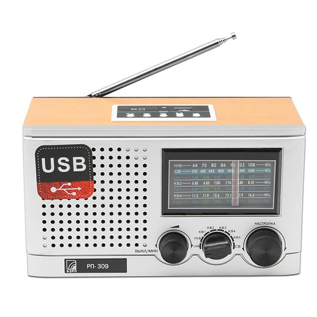 Технические характеристики:Тип - переносной Настройка частоты - аналоговая Прием - FM, УКВ, СВ, КВ Количество динамиков - 1 Разъем для наушников Воспроизведение MP3Поддержка носителей - SD, USB Питание от сетиРазмеры (ШхВхГ) - 200х115х104 мм Дополнительная информация:Телескопическая антеннаГнездо для подключения питания 6В