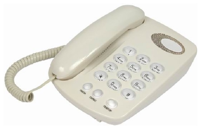 проводной телефонповторный набор номеранастенная установкарегулятор громкости звонкаДополнительная информация:кнопка быстрого сброса линии, световая индикация вызова