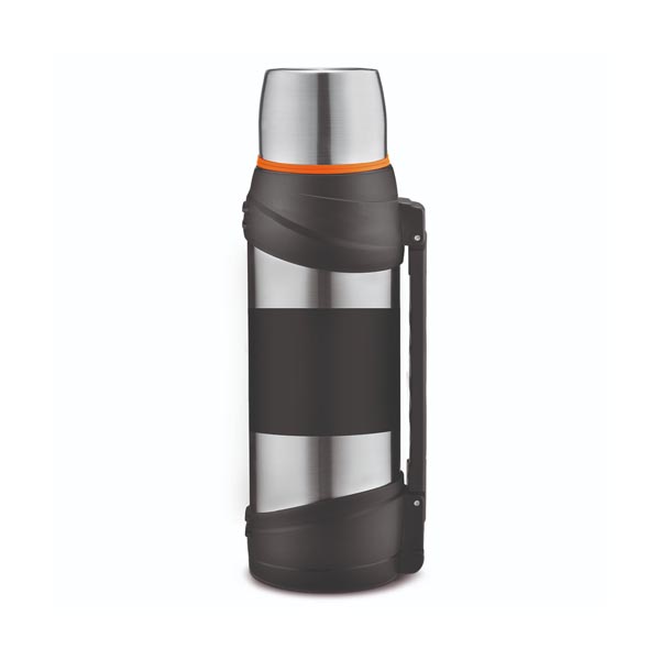 Объем — 2,0 л Материал — нержавеющая сталь, пищевой нейлон, пластмасса, силикон Двойные стенки Пробка-клапан Крышка-кружка Особенности — прорезиненная ручка, ремешок для переноски, ситечко для заваривания чая