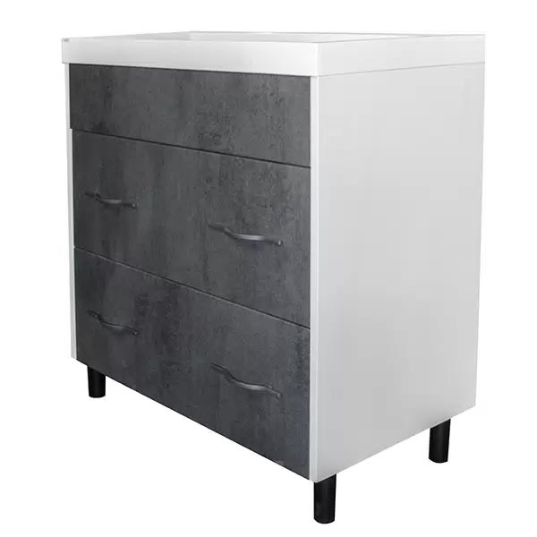 Ширина тумбы 80 смКонструкция тумбы - напольнаяОсобенности - матовая поверхностьМатериал корпуса ЛДСПМатериал фасада МДФПокрытие корпуса - пленкаПокрытие фасада - пленкаКоличество ящиков 2