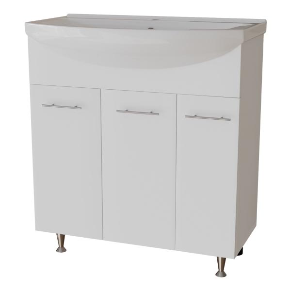 Тип – тумба с раковинойШирина – 745 ммГлубина – 430 ммВысота – 850 ммЦвет – белыйТип монтажа – напольныйСтилистика дизайна – современнаяМатериал корпуса – ЛДСПМатериал фасада – МДФМатериал раковины – керамикаФорма мебели – прямоугольнаяКомплектация – тумба, раковина