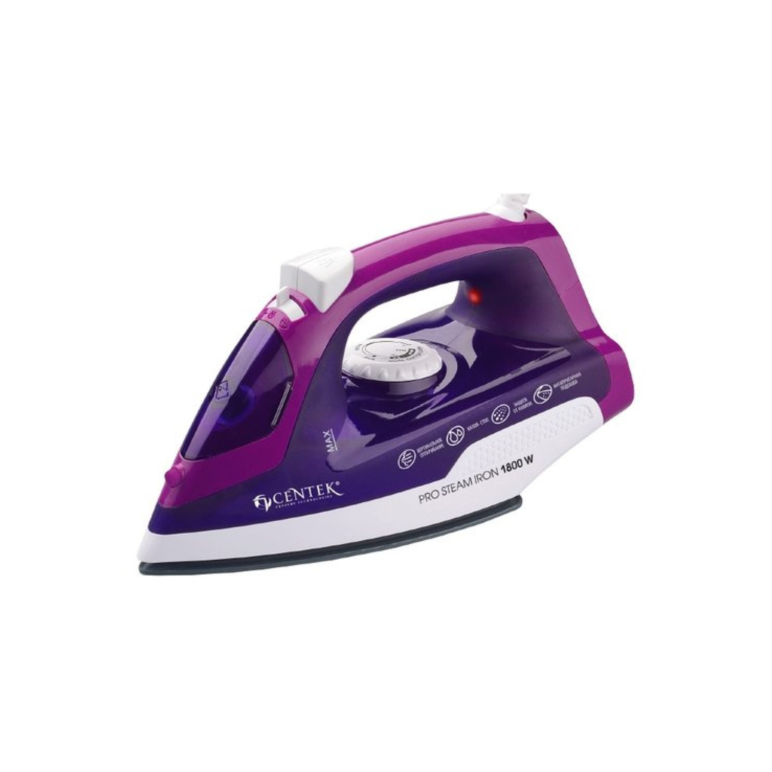 Общие характеристики:Мощность - 1800 ВтПодошва - керамикаФункции - постоянная подача пара, вертикальное отпаривание, паровой удар, защита от накипи, система самоочистки, противокапельная системаРегулировка подачи параФункция разбрызгиванияОбъем - резервуар для воды на 200 млКомфорт:Сетевой кабель - шаровое крепление к корпусуДлина шнура - 1.8 м