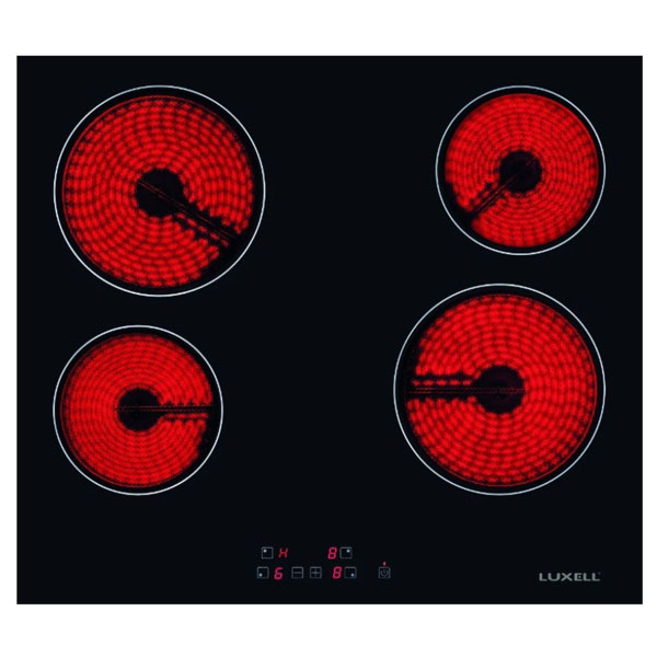 Боковая ручка управленияЛевая задняя панель - 140 мм / 1200 ВтПравая задняя часть - 180 мм / 1800 ВтЛевый передний - 180 мм / 1800 ВтПравый передний - 140 мм / 1200 ВтОбщая мощность - 6000 ВтРазмеры изделия - 52 x 59 смТип - стеклокерамическаяКоличество печей - 4 горелкиУстановка - встраиваемаяТип панели управления- с сенсорным управлениемРасположение панели управления - с фронтальной панелью управленияМатериал - из стекла