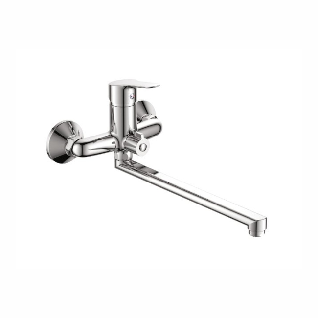 Общие характеристики:Тип - смесительКонструкция - однозахватныйНазначение - для ванны/душа и умывальникаМатериал - латуньЦвет - хромПокрытие - глянцевоеКоличество монтажных отверстий - 2Монтаж - вертикальный, на стенуИзлив - длинныйДлина излива, мм - 300Высота смесителя, мм - 170Вращение излива - поворотныйЗапорный клапан - керамический картриджДиверторСтандарт подводки - 1/2"ЭксцентрикиАэратор